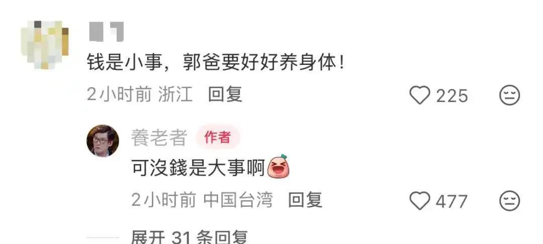 这话得从郭爸晒日常说起。前阵子他发了张吃卤肉面的照片,配文说“148元外卖吃两顿,省点钱给娃买零食”,底下立马有网友问起“养家”的事。郭爸没绕弯子,直接承认:“俩孩子的学费、保姆费,还有我做放疗的钱,都是碧婷在掏”。还补了句细节,说自己之前想让女儿带出门转转,都没敢答应,就怕多花她的钱,“她压力够大了,我不能再添负担”。